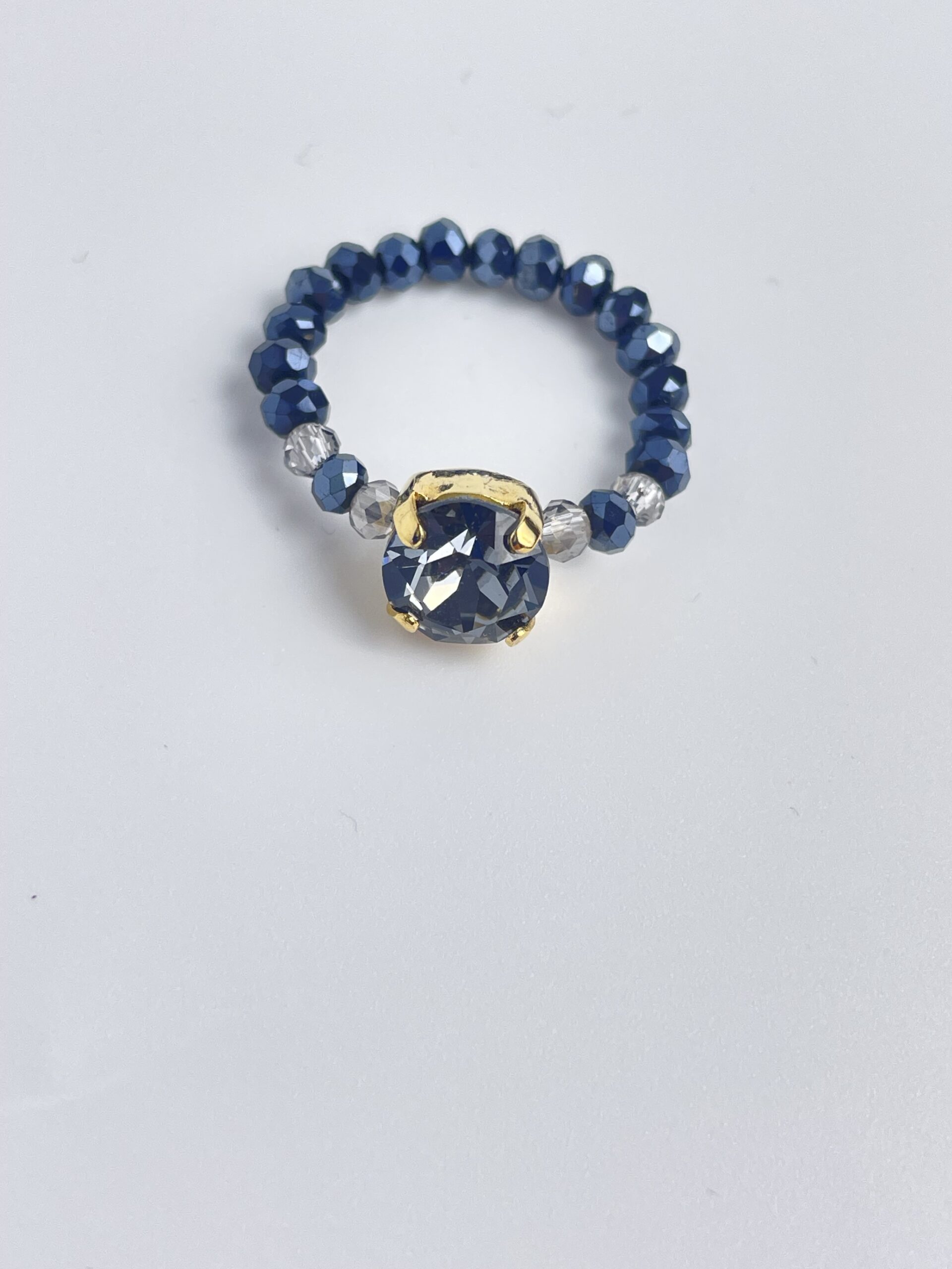 טבעת עם חוט סיליקון גמיש אליו מחוברים אבני הקריסטל בגוון אפור כחול