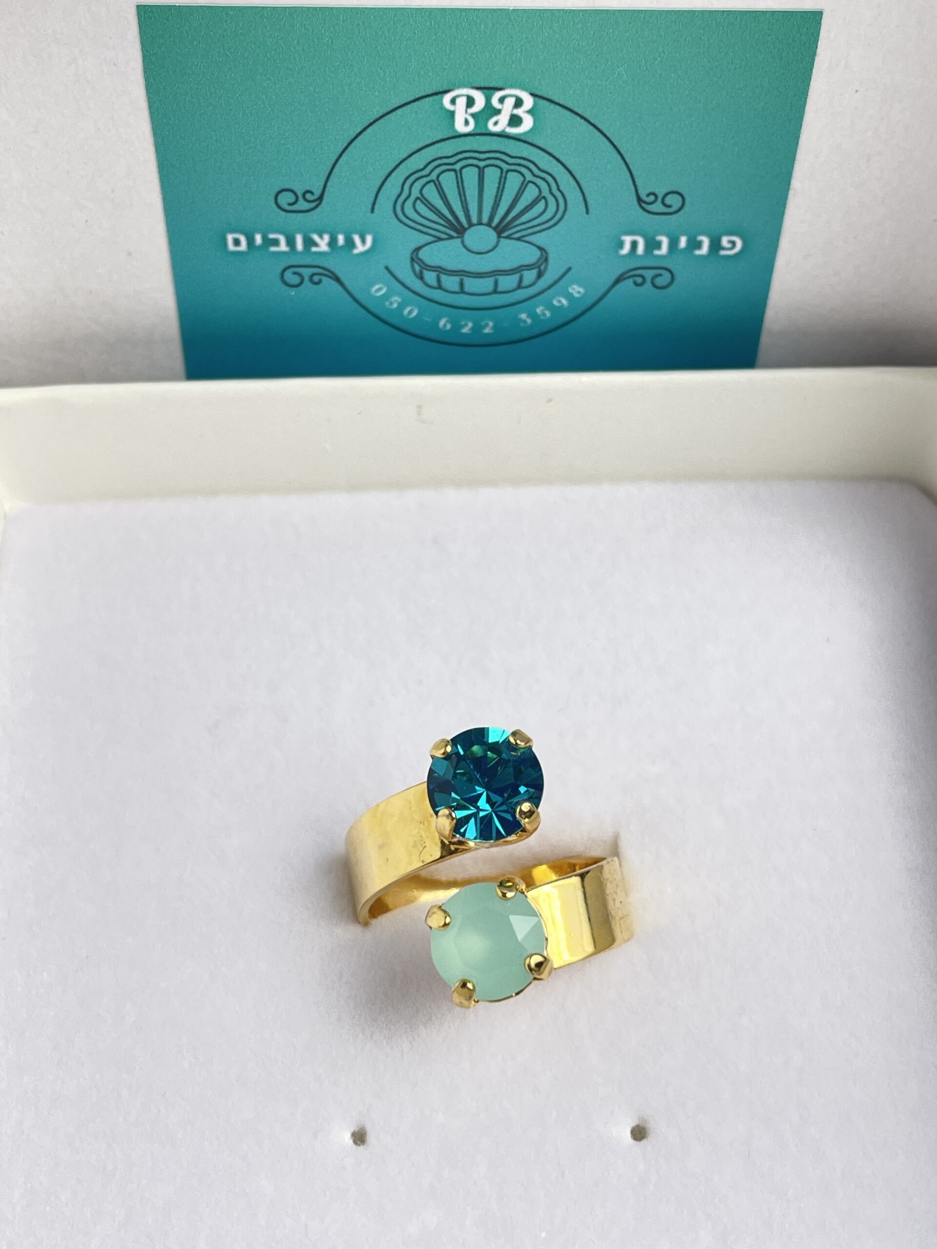 טבעת בשילוב אבני סברובסקי , בעבודת הלחמה , ציפוי 24 קארט.