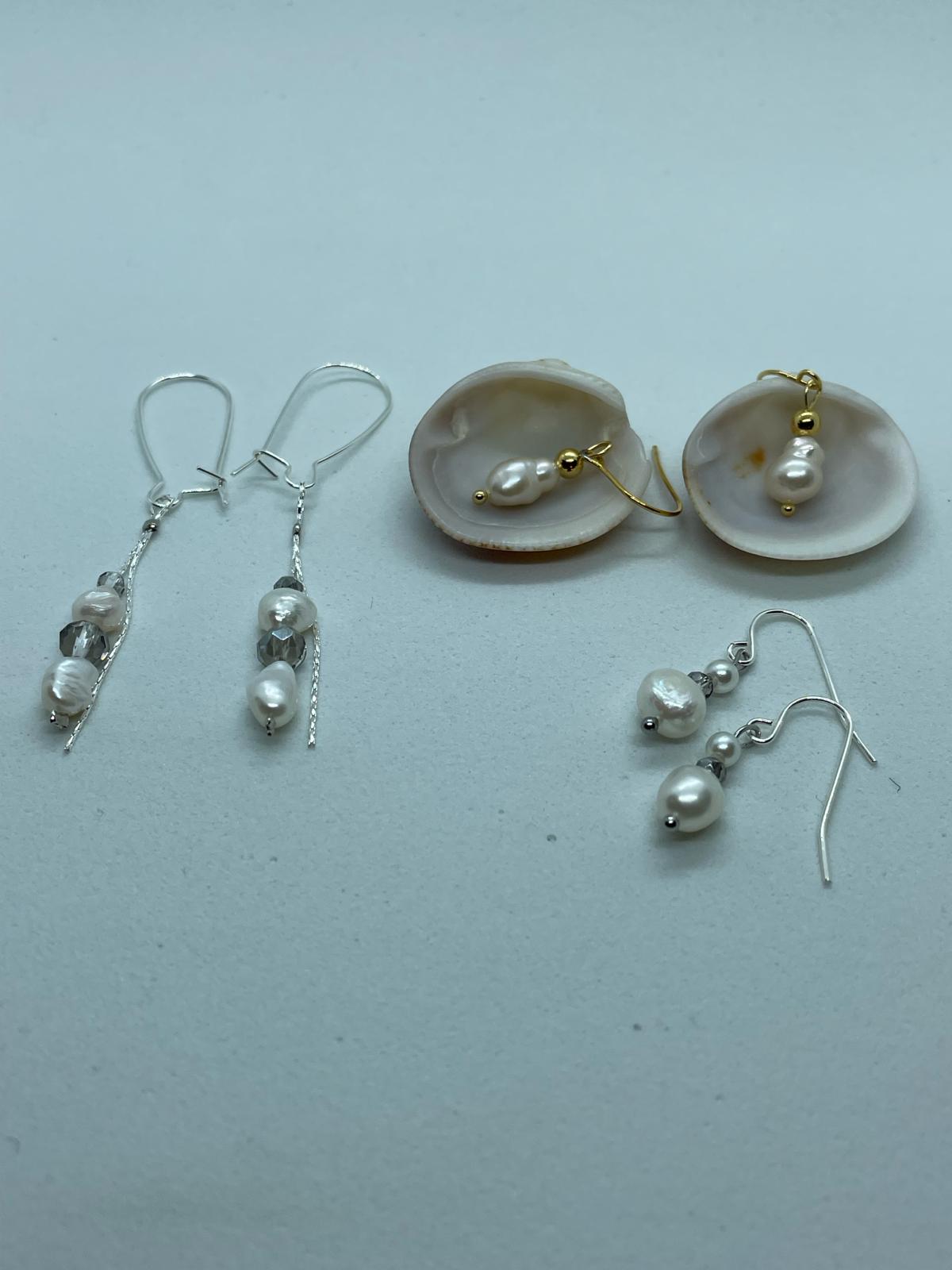 עגילים בשילוב פנינים ואבני קריסטל , בכסף ובציפוי זהב