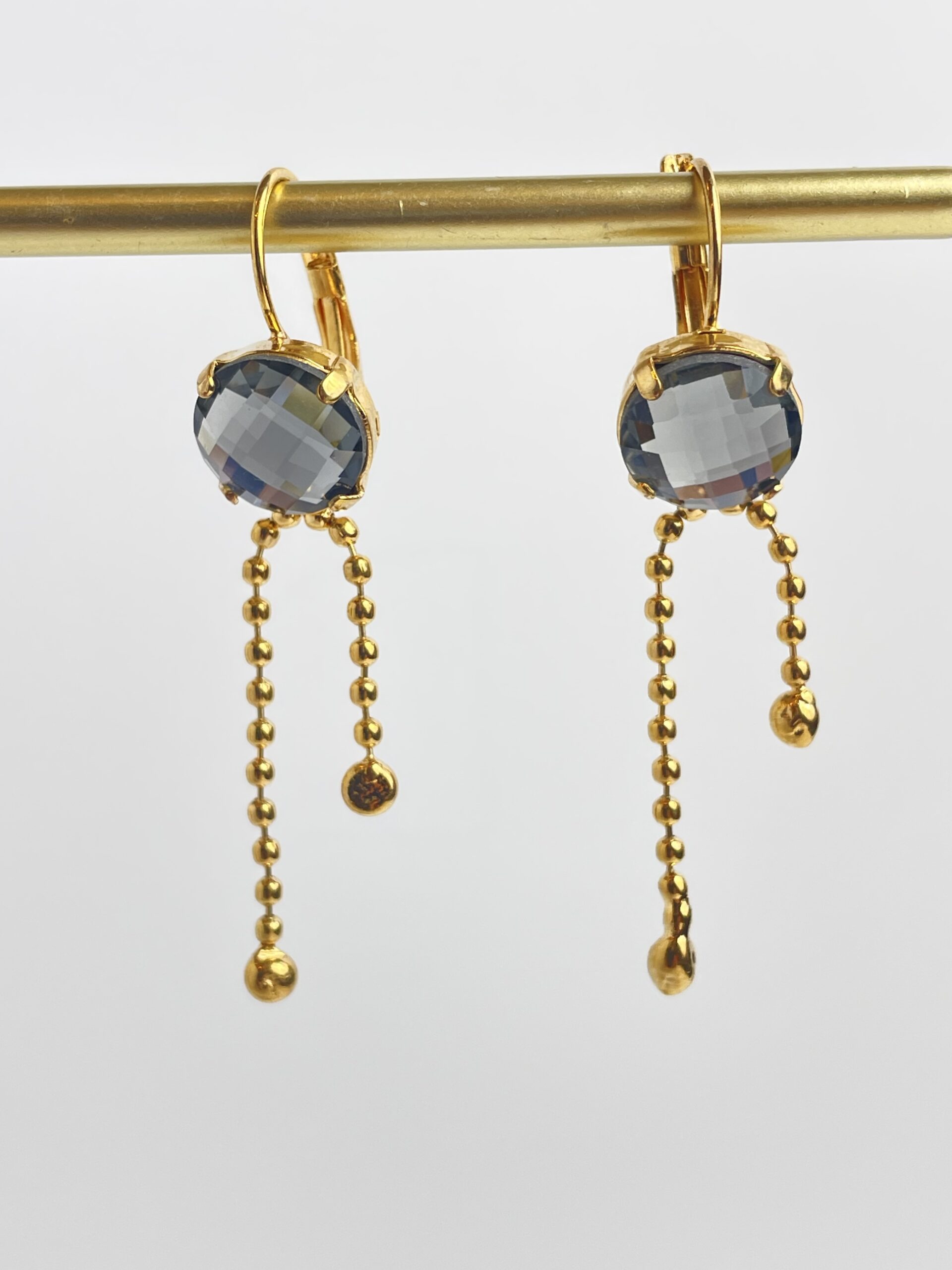 עגילים בשיבוץ אבני סברובסקי אפוררות, נעשה בעבודת הלחמה. בציפוי זהב 24 קארט.