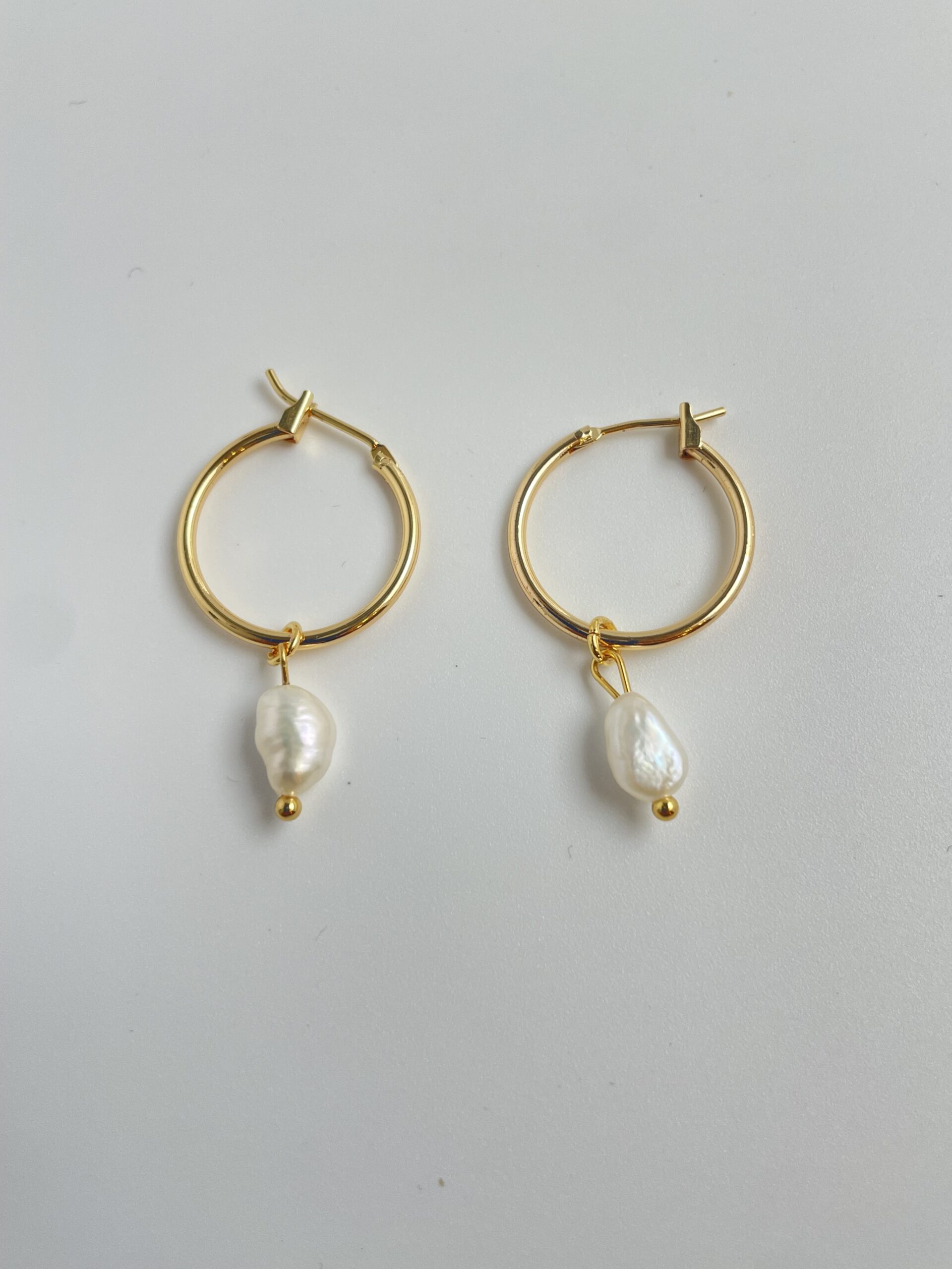 עגילי חישוק בשילוב פנינה ציפוי זהב 24 קארט