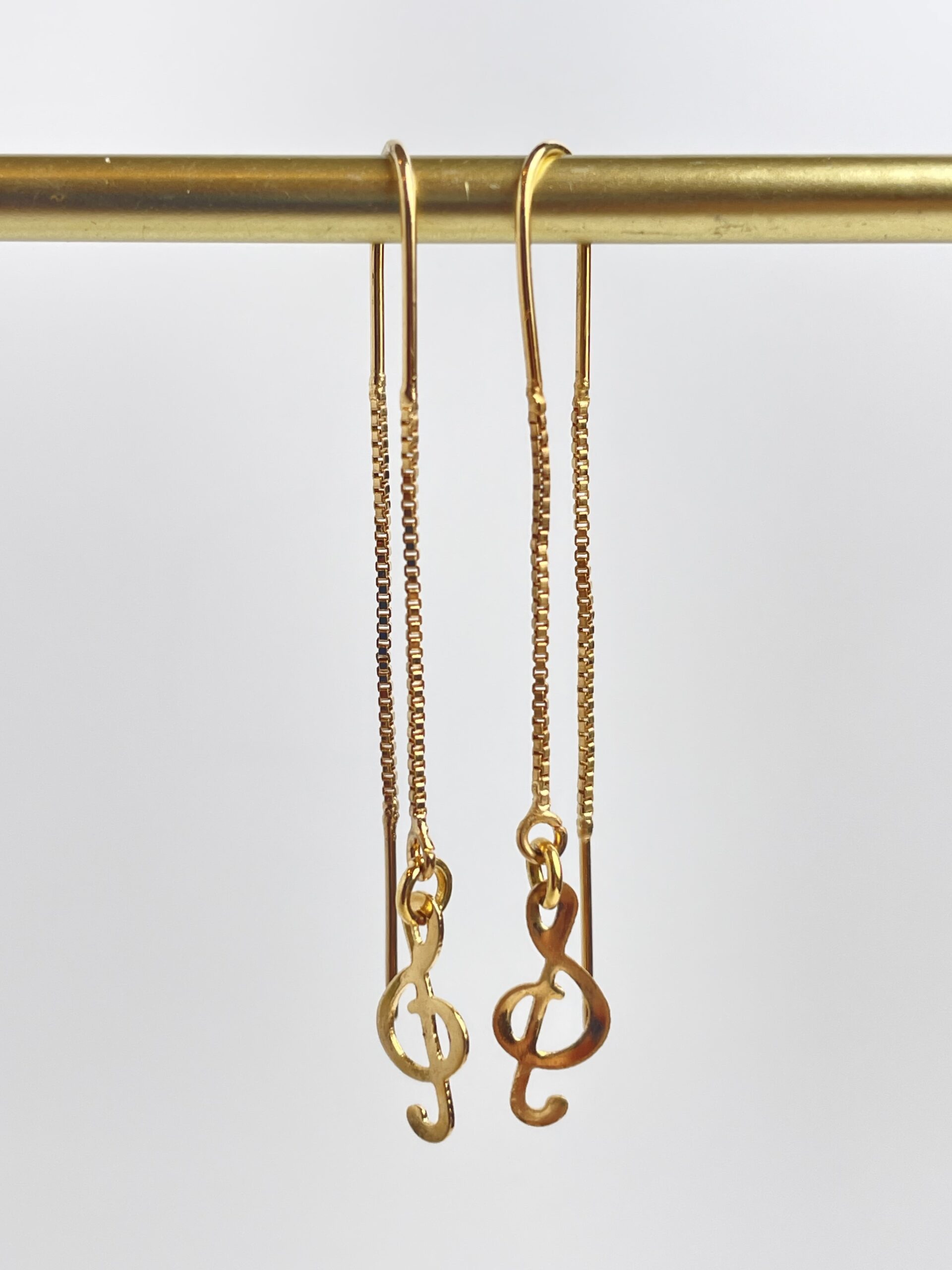 עגילי שרשרת מפתח סול בציפוי זהב 24 קארט