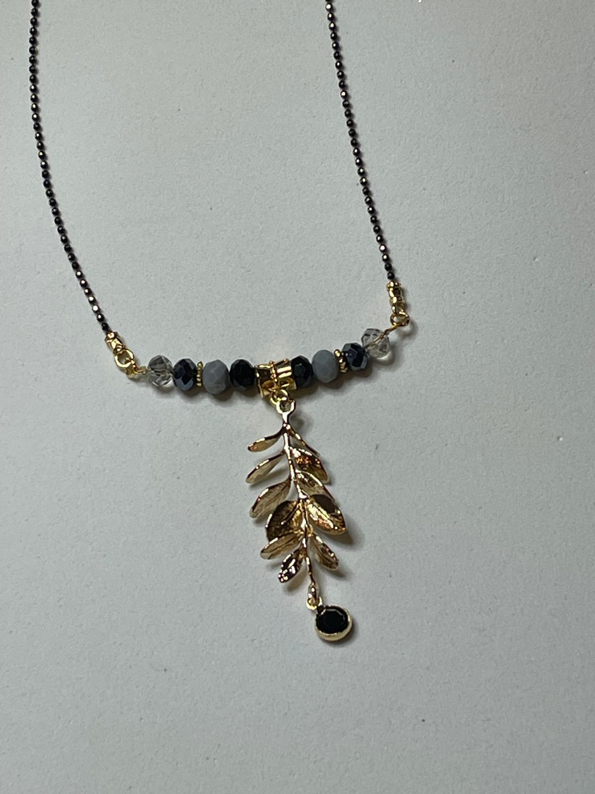 שרשרת בשילוב אבני קריסטל ועלה בציפוי זהב 24 קארט