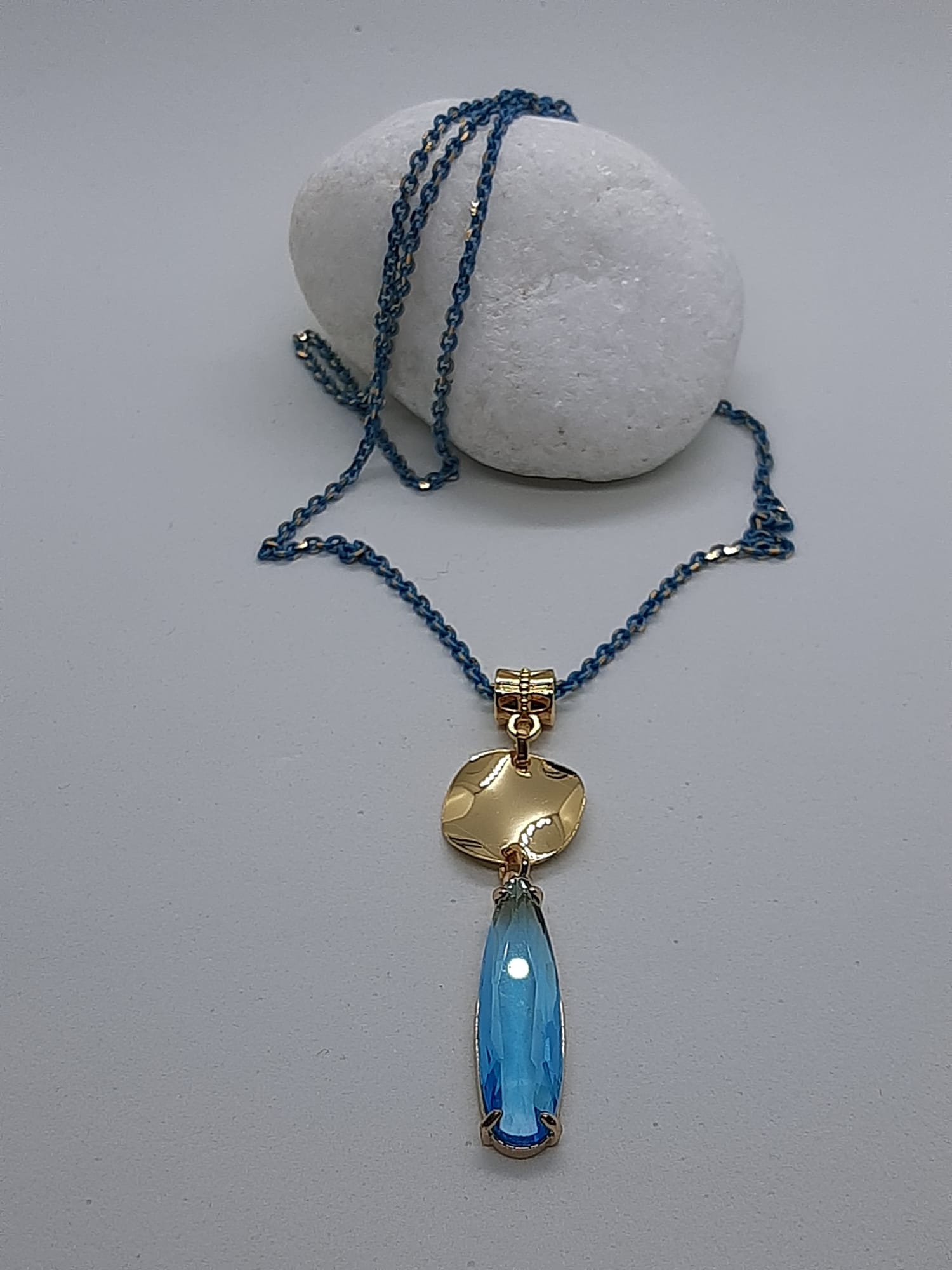 שרשרת תליון ארוכה משולבת עם אבן קריסטל גדולה ומטבע , בציפוי זהב 24 קארט