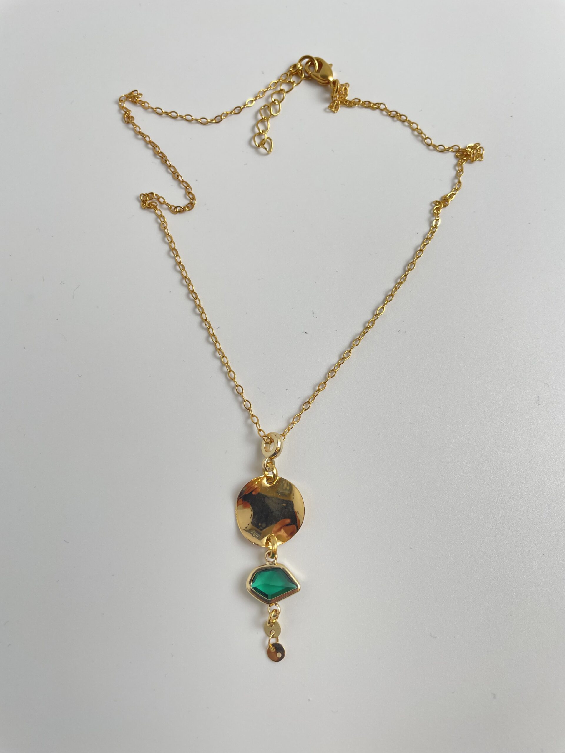 תליון מטבע , משולב אבן קריסטל ירוקה. ניתן לשלב אבן בכל צבע. בציפוי זהב 24 קארט.