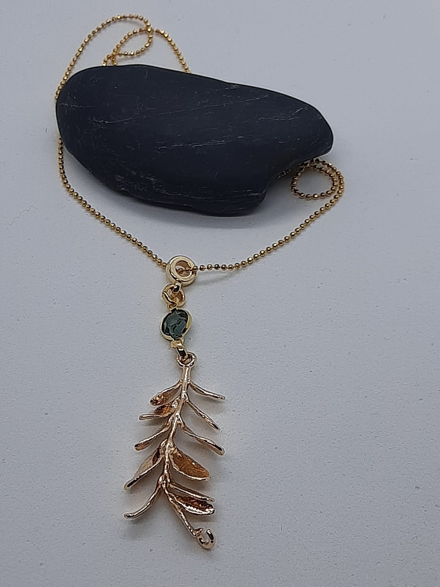 תליון עלים . בשילוב אבן הדקל בציפוי זהב 24 קארט